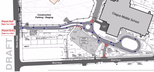 Due to the construction efforts, a new Clague vehicle traffic pattern is necessary and is identified below. These changes are scheduled to be in place starting Monday, January 5, 2026.