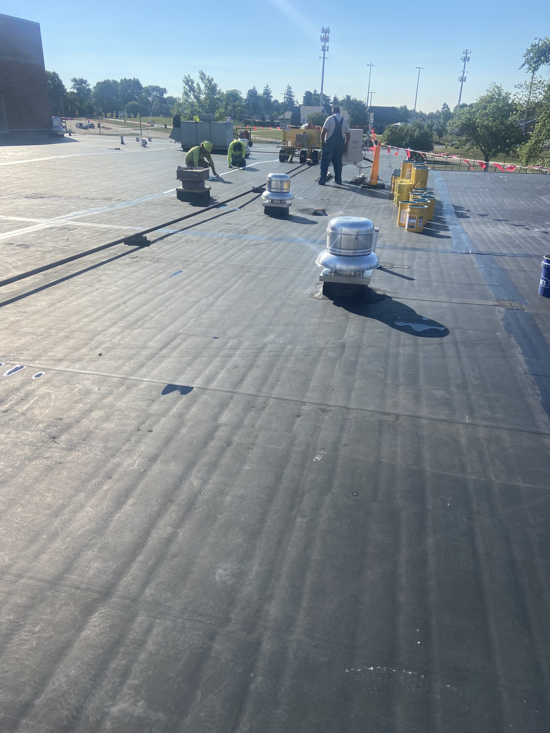 Construction/repairs of multiple sections of the school roof.
