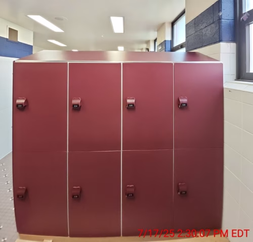 Renovations to the cafeteria took place including new front doors and new lights in the stairway.